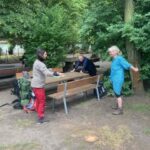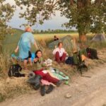 Mit eigenen Autos nach Nienburg an der Saale- der Garten von Neugattersleben – unter die A14 (der letzten Autobahn vor dem Harz) – entlang der Bode nach Hohenerxleben – weiter nach Staßfurt – Mittagessen im Zoo – weiter entlang der Bode – Pause am Löderburger See – kaputte Wanderschuhe – durch Groß Börnecke – ein Zeltplatz am Wegesrand – der schönste aller Sonnenuntergänge